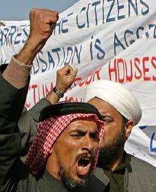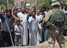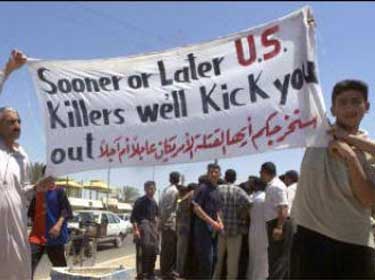 In April 28, 2003 US troops fired on an unarmed Iraqi demonstration in Falluja, killing 17 protesters. Two days later another protest was organized (see the photo to the right and the first 3 photos below) in which 3 more protesters were shot dead by US troops.